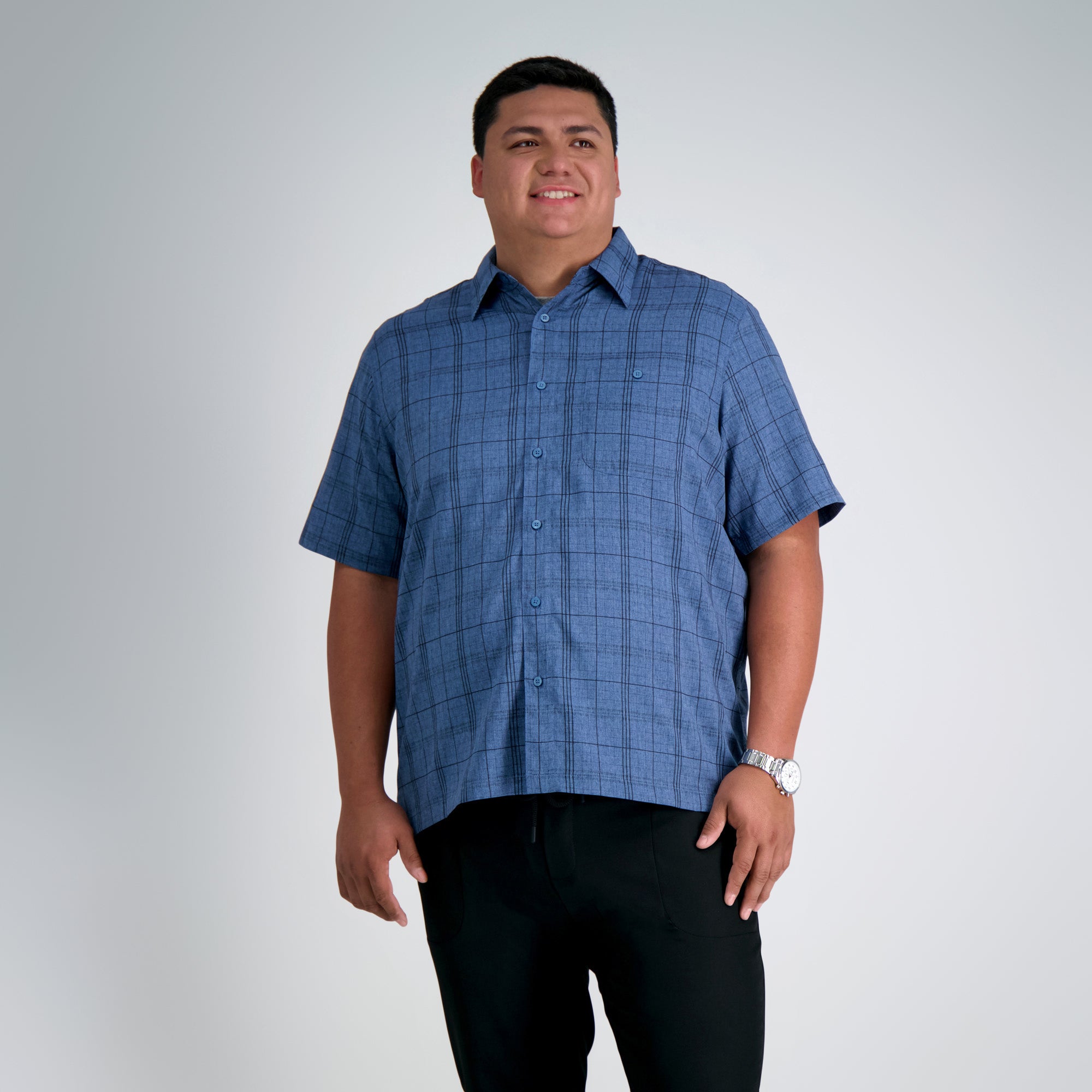 Haggar Men’s Big & Tall Microfiber Plaid Shirt | London Blue