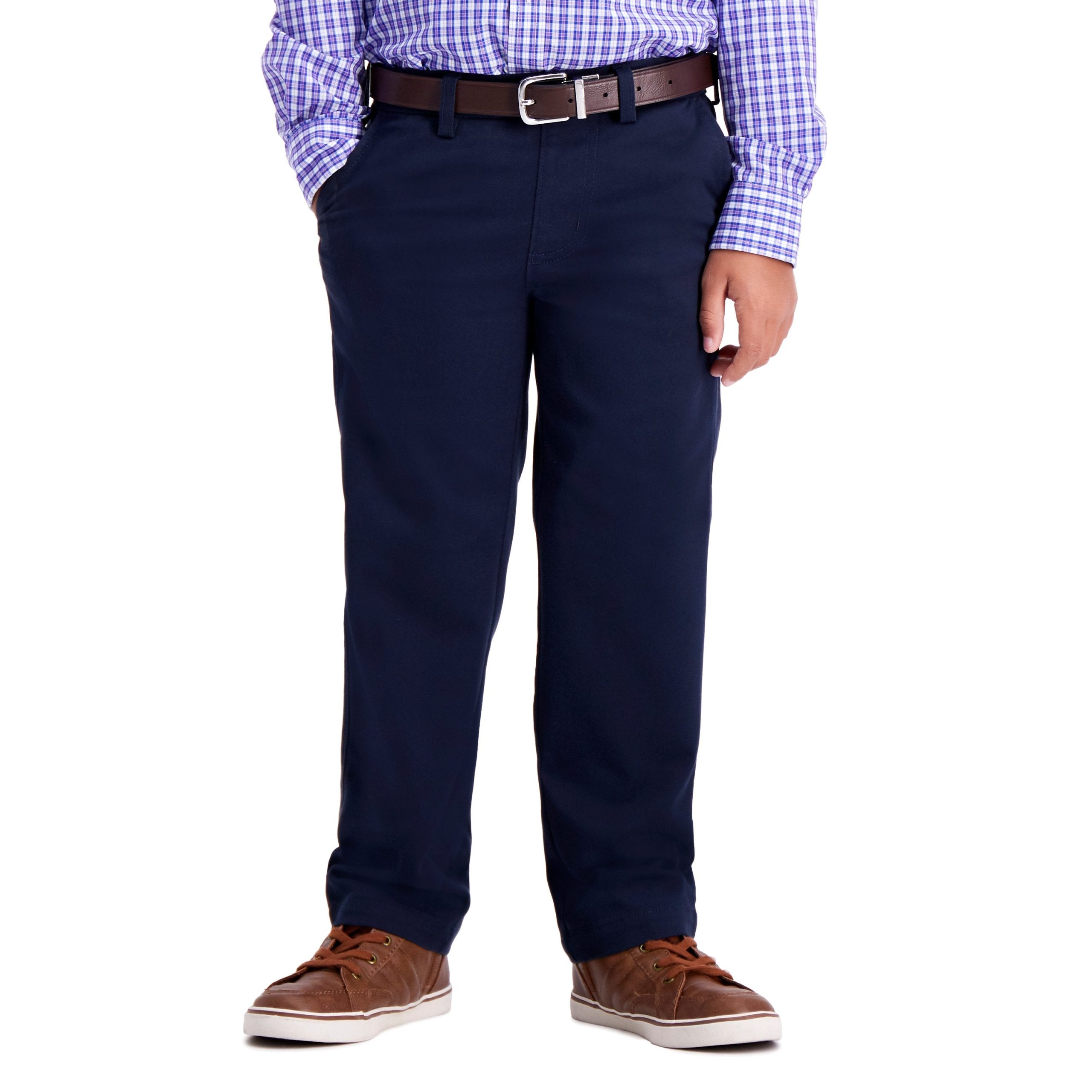 The Haggar Boys line offers unique comfort features that help active kids to easily move throughout the day from playground to classroom to after school activities. Features include reinforced knees for durability, stretch fabrics that move with them and industry-leading comfort waistbands that flex for better fit and comfort. These pants are made with eco-friendly REPREVE fiber created from recycled water bottles. It’s one of many ways we are making a big impact for future generations.