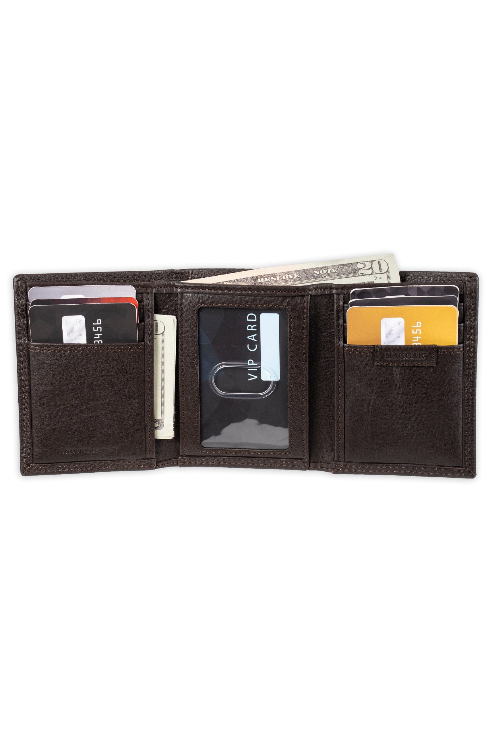 When you see the Haggar name, you know you can count on exceptional style and quality. World class reliability and iconic men’s style combine to give you this wallet with a metal ornament Haggar logo on front cover.