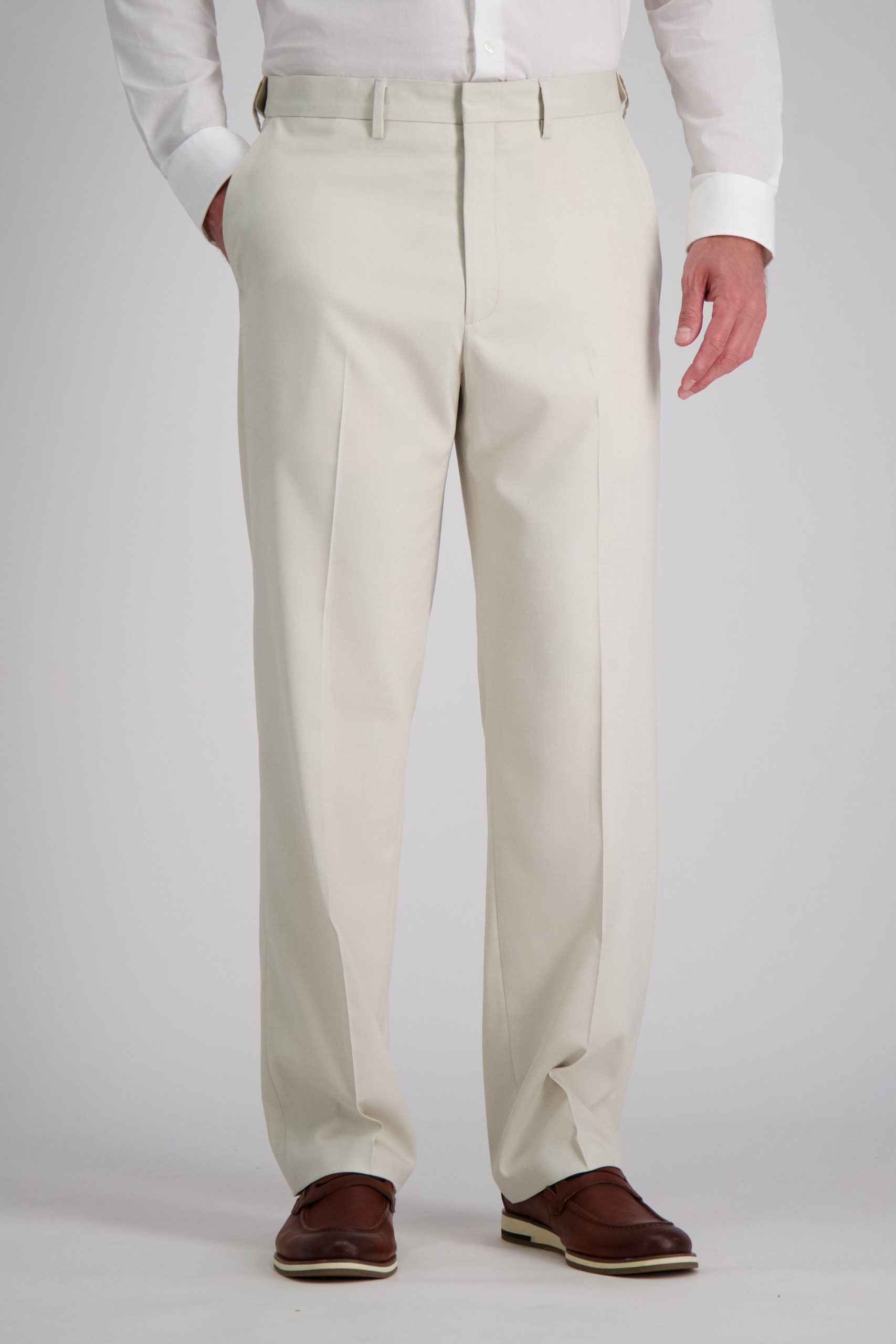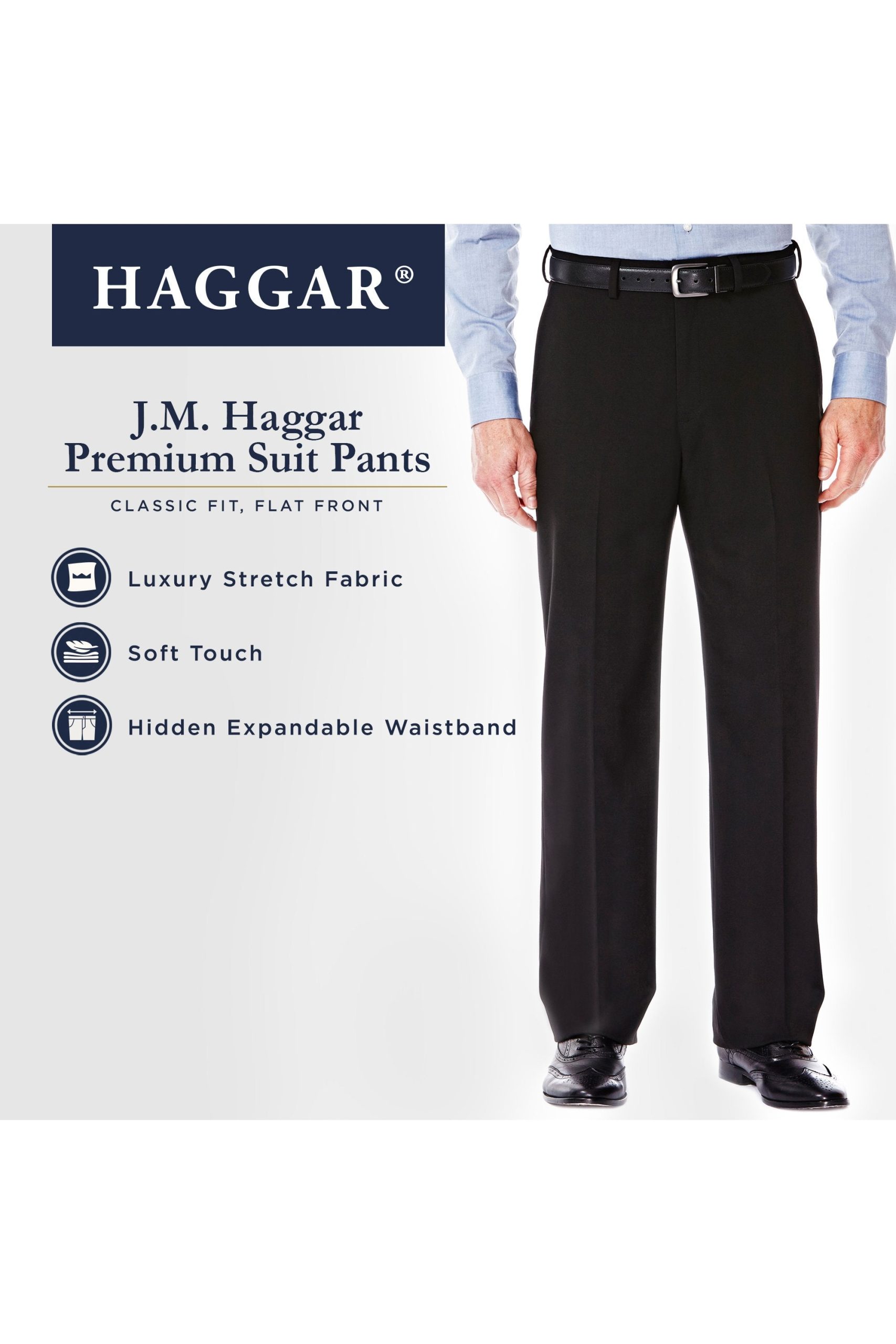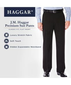 J.M. Haggar suit separates offer exceptional style, quality and flexibility for you and your wardrobe. Made from our finest fabric with stretch built right into the fibers, these dress pants come with our legendary hidden expandable waistband to let you breathe easy. Matching jacket available.